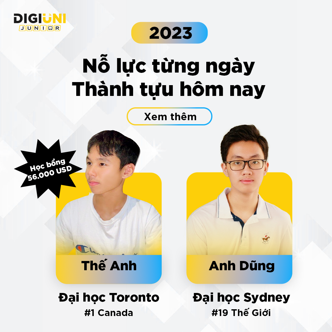 Với kinh nghiệm tổ chức hơn 6,000 lớp học cho học sinh trên toàn lãnh thổ Việt Nam và quốc tế như: Hàn Quốc, Nga, Canada, Úc… DigiUni không những củng cố vững chắc kiến thức nền tảng về công nghệ số mà còn giúp thế hệ trẻ phát triển về mặt tư duy logic sáng tạo và các kĩ năng mềm quan trọng khác, nhằm đảm bảo cho các con có được tương lai thành công hơn trong kỉ nguyên công nghệ.
